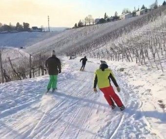 Es fühl sich fast wie im Winterurlaub an, wenn man die Schifahrer hier vorb ...